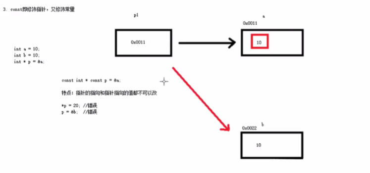 特点:指针指向的地址和地址内的值都不允许修改;