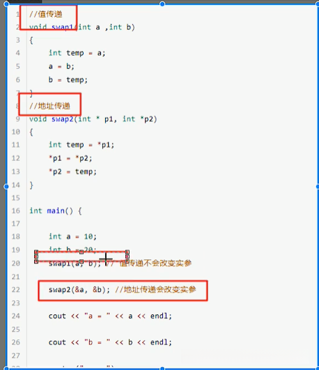 地址传递可以修改实参;