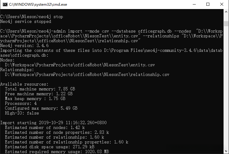 使用neo4j-admin命令进行导入操作时,请确保先暂停服务并删除graph.db文件。需要注意的是,在初始化阶段仅能执行一次该操作。这使得我们可以高效地在初次构建数据库时一次性导入大量数据。后续若需进行更多数据的导入,则可以采用上述方法。