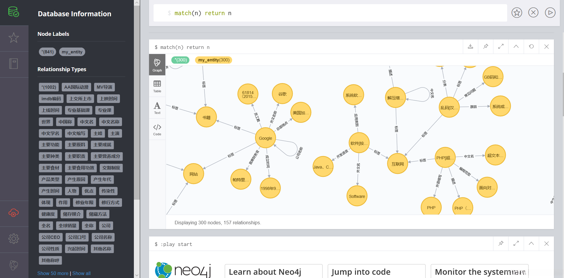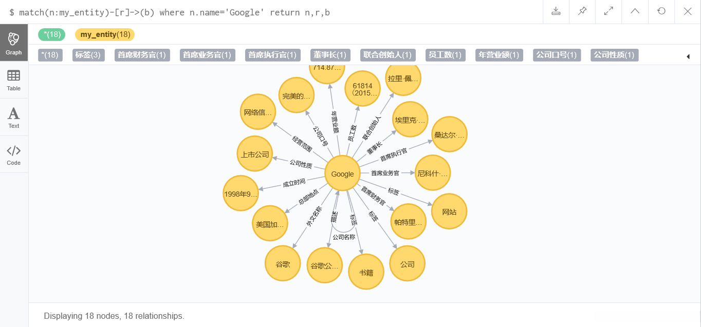 match(n:my_entity)-[r]->(b) where n.name='Google' return n,r,b
