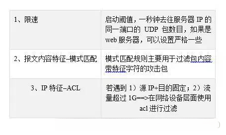 - 攻击端口为非业务端口:一个是丢弃所有UDP包,可能会误伤正常业务;一个是建立UDP连接规则,要求所有去往该端口的UDP包,必须首先与TCP端口建立TCP连接。不过这种方法需要很专业的防火墙或其他防护设备支持。