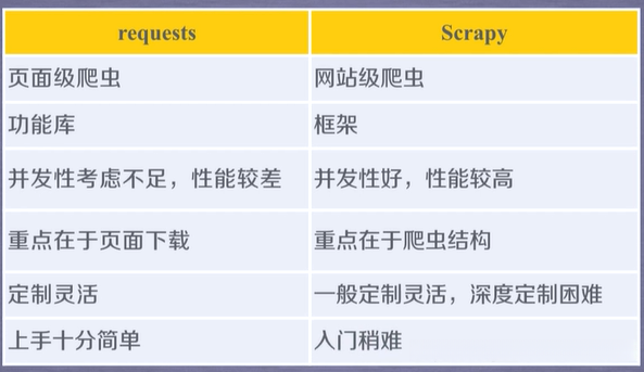 3、requests库和Scrapy爬虫的比较