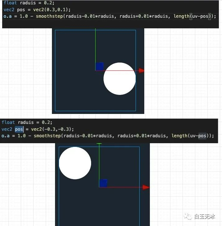 一般会把uv坐标范围转成-0.5~0.5这个范围。这样,图片的正中心刚好是(0,0)。
