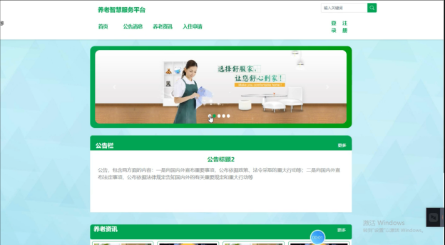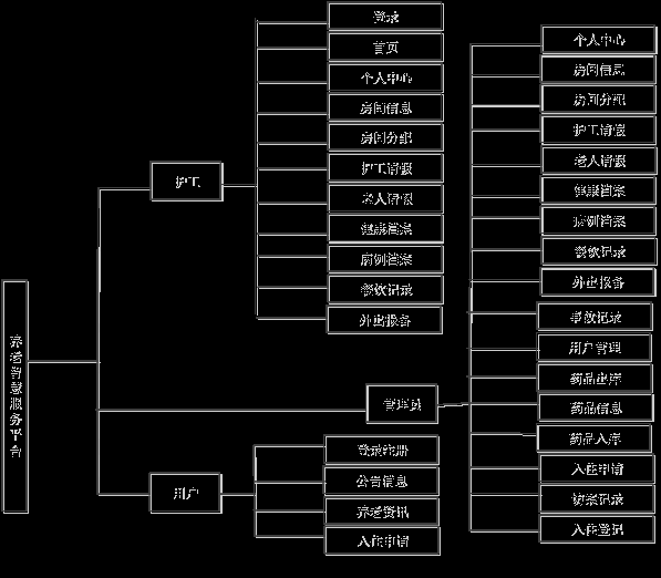 本设计主要实现集人性化、高效率、便捷等优点于一身的养老智慧服务平台,实现功能:首页、用户管理、老人信息、房间信息、入住申请、入住登记、房间分配、护工请假、健康档案、病例档案、药品信息、药品出库、药品入库、餐饮记录、外出报备、事故记录、访案记录等功能模块。系统通过浏览器与服务器进行通信,实现数据的交互与变更。只需通过一台电脑,动动手指就可以操作系统,实现数据通信管理。整个系统的设计过程都充分考虑了数据的安全、稳定及可靠等问题,而且操作过程简单。本系统通过科学的管理方式、便捷的服务提高了工作效率,减少了数据存储上的错误和遗漏。