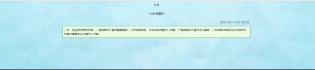 当点击导航栏上的“公告栏”的时候,就会进入对应的界面查看公告信息,公告栏界面如下图4-5所示。