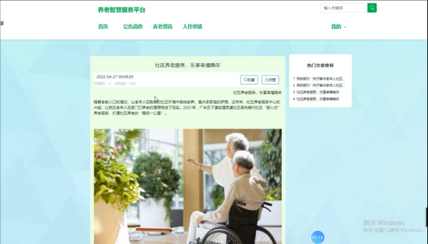 用户在点击导航栏上面的养老资讯后,就可以搜索查看养老资讯信息,用户根据自己的喜好可以进行查询、评论,养老资讯界面如下图4-5所示。