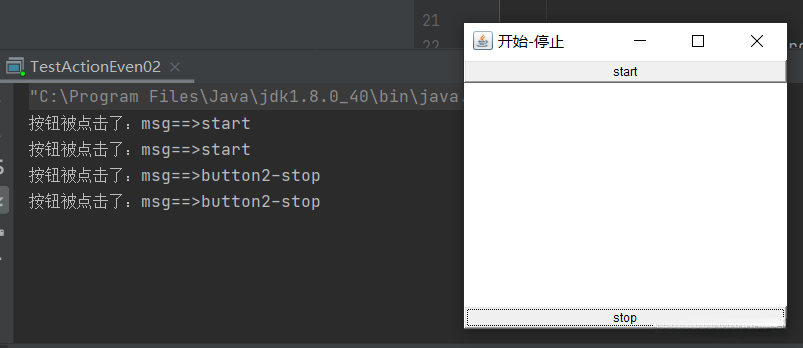 System.out.println("按钮被点击了:msg==>"+e.getActionCommand());