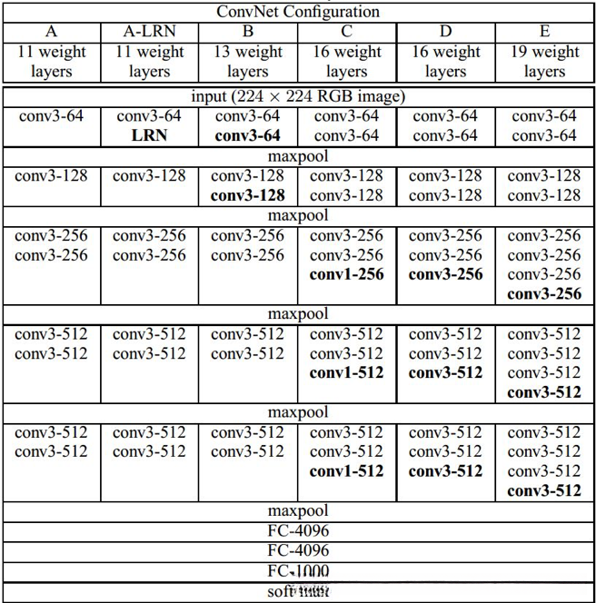上图列出了6种VGG网络结构图,其中VGG16和VGG19较为常见,也是性能最好的两个网络结构,下面是对A-E的网络性能进行分析: