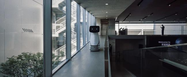 在AI PARK入口处,设置着机器人充电台,停靠着待命的各类机型。参观者由此被机器人带领穿越甬道,到达一个围合入口庭院,仿佛来到另一个时空。然后和机器人一起走进AI PARK中展开探索。
