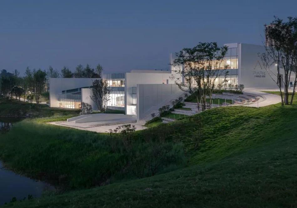 AI PARK设计之初,便将科技与艺术完美融合,将绿色低碳理念贯穿到园区建设的每一帧。建筑切割成富有渗透性的结构,通过山谷轮廓造型确保最大的综合守光率,减少日渐室内人造光源的使用。