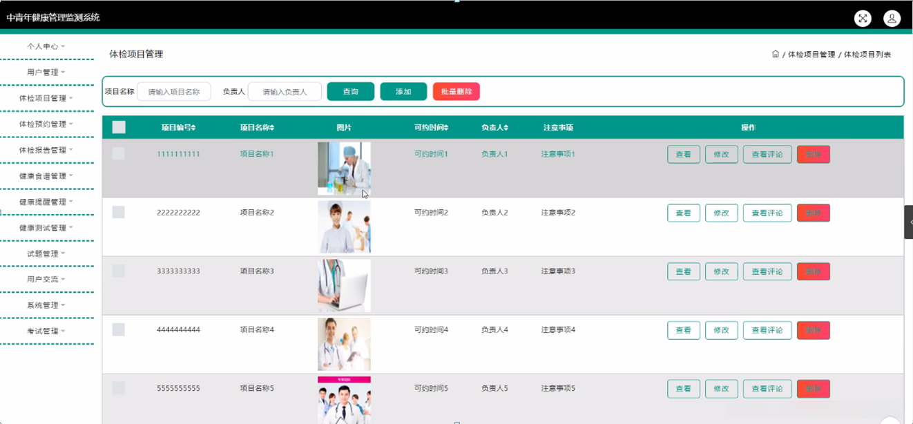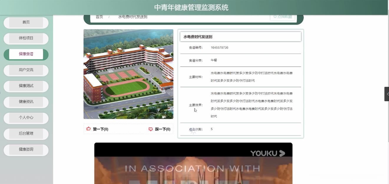 中青年健康管理监测系统的网站,在首页上可以看到各种功能选项。用户可以通过该平台浏览 homepage 信息以及获取详细的内容。检测项目部分提供详细的数据查询服务,在线浏览即可完成操作流程。健康的食谱模块允许用户查找营养建议,在线浏览即可完成操作流程。用户的交流区支持在线讨论与分享观点,在线浏览即可完成操作流程。健康的测试功能帮助评估身体状况,在线浏览即可完成操作流程。健康的资讯部分提供最新的医学知识与健康建议,在线浏览即可完成操作流程。个人中心供用户管理信息与设置选项,在线浏览即可完成操作流程。后台管理后台管理功能用于系统维护与数据更新,在线浏览即可完成操作流程。健康的咨询则提供专业的指导服务,在线浏览即可完成操作流程
