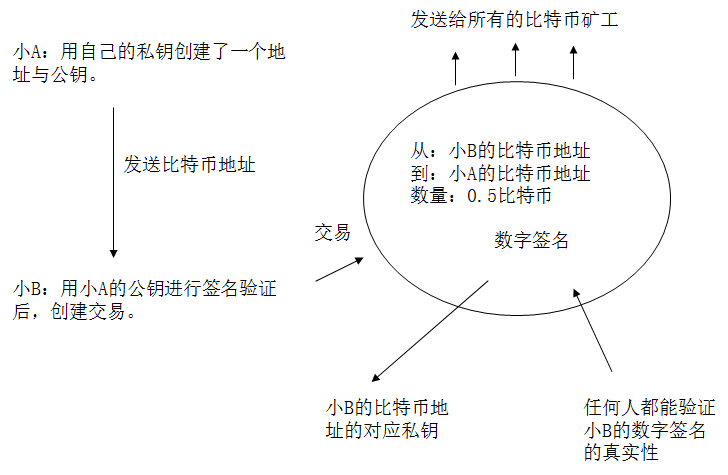 为了更好地理解,我们举个交易的例子来说明整个流程的运作。假设小A和小B要进行一次交易,小A想向小B证明自己是真实的小A,那么小A只需要使用私钥对文件进行签名并发送给小B,小B则使用小A的公钥对文件进行签名验证,如果验证成功,就证明文件是由真实的小A用私钥加密过的。