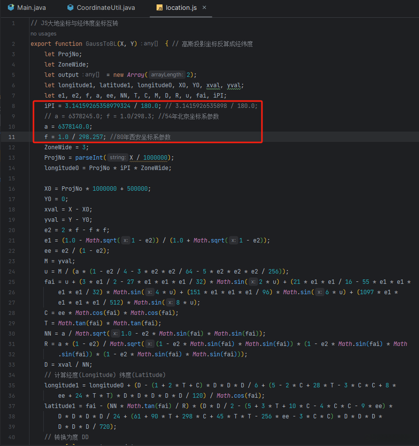 java js 经纬度转换 大地坐标(高斯投影坐标)与经纬度互相转换