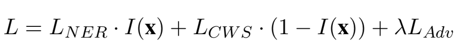 目前所讲述的是NER和CWS相关的损失。然而,在整个系统中,总的损失由对抗损失与之前提到的部分组成。