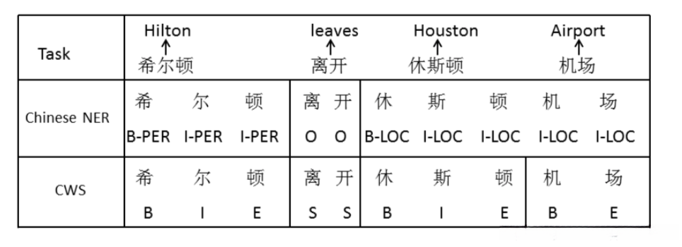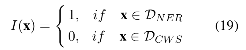 值得注意的是共享的BiLSTM模型,在这两个任务都涉及的情况下,并且在训练阶段NER与CWS并非同时被处理。因此,在公式推导方面会呈现出这样的特征: