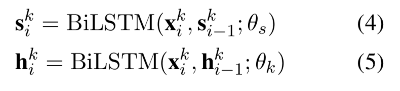 在这里,模型中包含三个不同的 BiLSTM 单元:其中一个是同时处理 NER(命名实体识别)和 CWS(词边界识别)的任务;另一个是共享权重设计的 BiLSTM 单元。对于熟悉 CWS 以及 NER 或者序列标注任务的人来说,了解这个经典的架构是必要的。无论是在 NER 任务还是 CWS 任务中使用的 BiLSTM 单元,在计算方式上都保持一致。