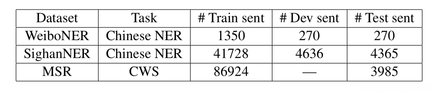 该文章专注于中文微博上的命名实体识别问题。由于所使用的数据集规模较小,在未采用迁移学习策略(即传统意义上的多任务学习)的情况下,单纯基于当前任务的数据进行训练,则难以取得显著效果。
