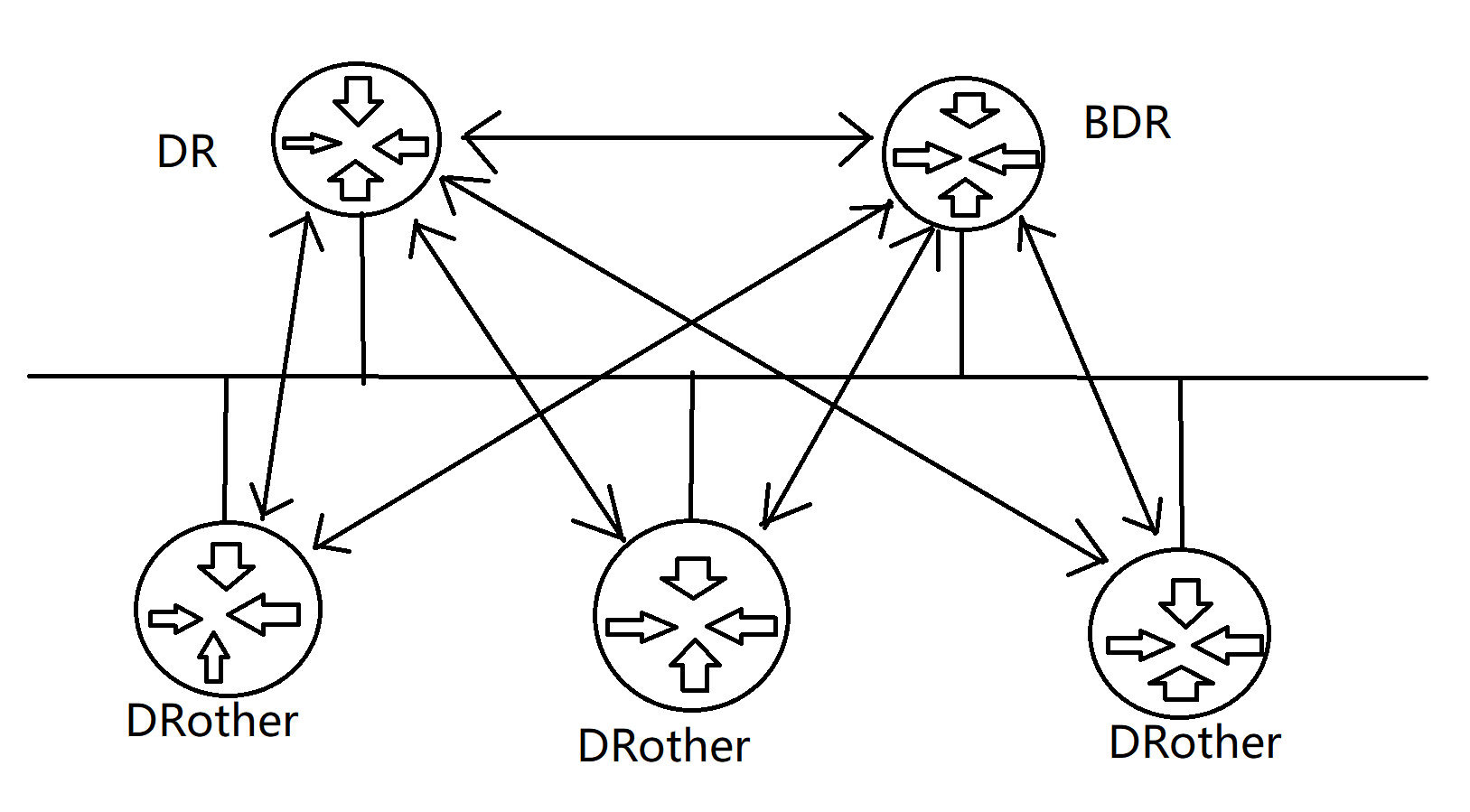 其他路由器(DRothers)只和DR、BDR形成邻接关系