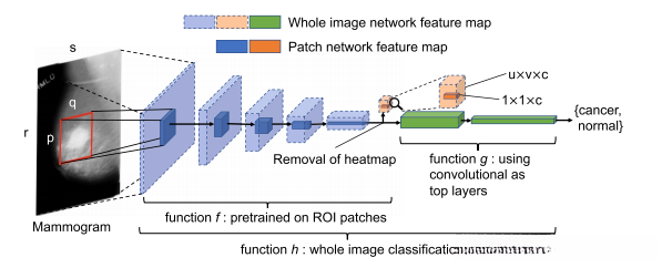 使用带有 ROI 信息的完全注释数据集来预先训练用于分类局部图像块的模型。然后使用补丁分类器的权重参数来初始化整个图像分类器的权重参数,可以使用没有 ROI 注释的数据集进一步微调。
