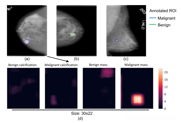 作为图像分类任务,通过筛查性乳房X光检查检测亚临床乳腺癌具有挑战性,因为肿瘤本身仅占据整个乳房图像的一小部分。例如,全视野数字乳房 X 线摄影 (FFDM) 图像通常为 4000×3000 像素,而潜在癌性感兴趣区域 (ROI) 可能小至 100×100 像素。