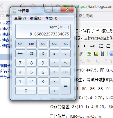 四分位数:Q25%位置=(n+1)/4,Q75%位置=3(n+1)/4