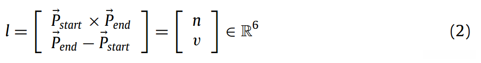 其中l是包含n和v的6 × 1向量,n是直线的矩向量,v是直线的方向向量,n垂直于由原点和直线确定的平面。