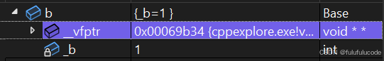 // 2.再解引用取值,就取到了b对象头4bytes的值,这个值就是指向虚表的指针
