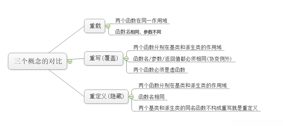 对派生体功能(覆盖):在派生体中存在一个与基本类型中的功能完全一致的虚拟方法(即其子类继承了基类的功能),这种现象被称为方法重写或功能覆盖。