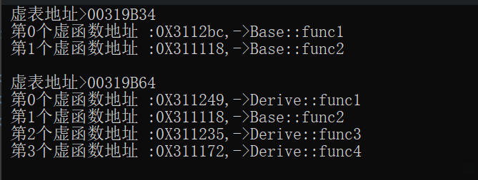 virtual void func4() {cout<<"Derive::func4" <<endl;}