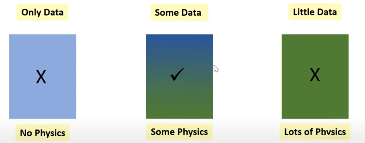 让我们来探讨PINN的应用场景,请参考下图所示的三种情况进行分析:仅包含少量的数据量;既包含一定数量的数据又涉及相关的物理规律描述;完全依赖于机理模型的知识体系。