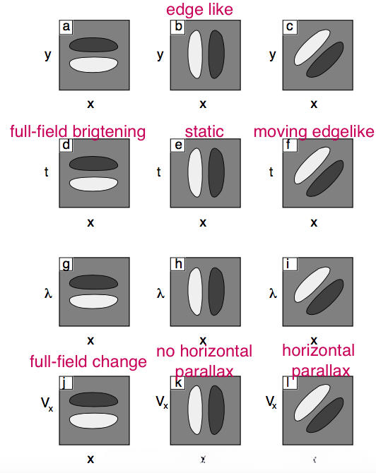 (x, Vx/Vy/Vz): information as eye position shift from left to right (up and down/ forward and backward).