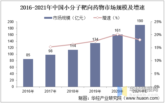 2016-2021年中国小分子靶向药物市场规模及增速