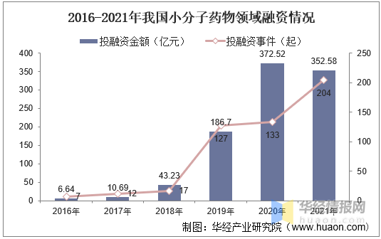 2016-2021年我国小分子药物领域融资情况