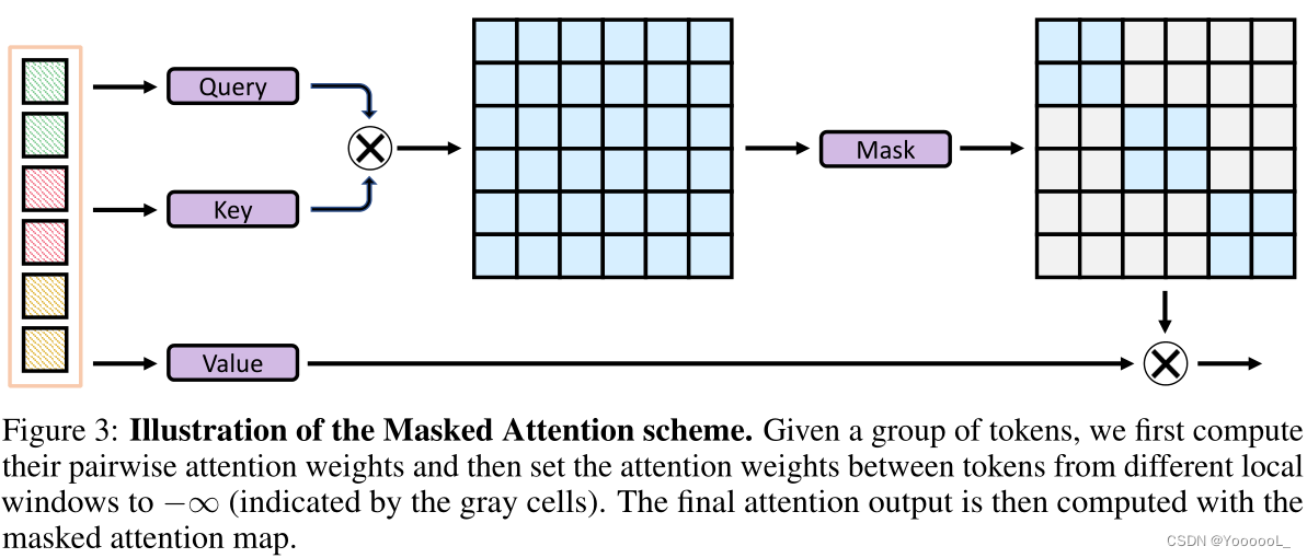在输入序列的上方施加Masked Attention操作。随后利用分区 Π 的逆运算来恢复输出 tokens的位置。(在这里为了简便起见 本文假设 tokens的数量