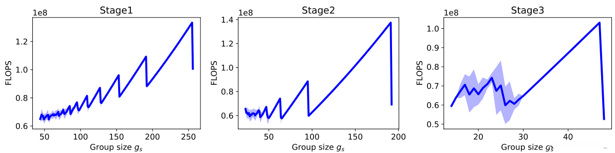其中 C 代表通道数量。虽然复杂度与组大小 gs 的平方呈正比关系,在实际应用中选择较小的 gs 可能会导致生成更多小组(以及相应的填充项),从而影响整体效率。由此可见,在训练过程中应动态调整最优的组大小。