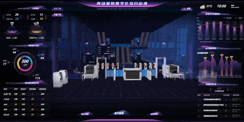 伴随着城市轨道交通运营水平的精进不休和运营规模的急速扩张,智慧城轨的构建可谓是“新基建”中具有代表性的领域。图扑软件应用自研 HT 产品,无缝融合 2D、3D 可视化技术,构建一套轻量化的青岛城轨数字化综合运维解决方案。