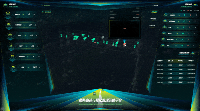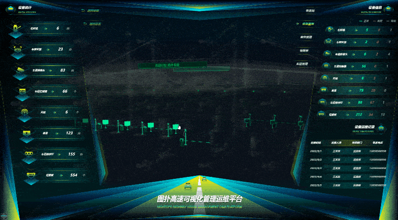 传统的人工设备巡检耗时耗力,关联机电设备种类多、数量庞大,日常管理运维成本高。因此,推进智慧高速建设势在必行。通过图扑软件的可视化技术将所有智慧机电设备如服务区灯光、空调、监控、户外充电桩、地磁、环境检测等设备进行统计与设备运维记录汇总,实现彼此间的信息互联互通和自动控制,并与交通工具、交通参与者的协同联动。