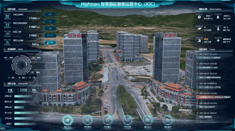 场景设置了科技 GIS 地图版与写实风格三维模型的 2 种切换模式,客户可以点击 GIS 地图上的图标对不同场景进行跳转,亦可通过在三维场景中,对场景模型进行交互,实现场景跳转。
