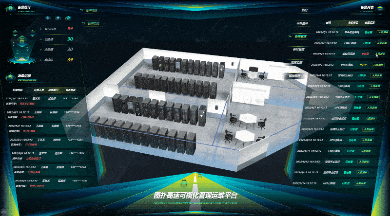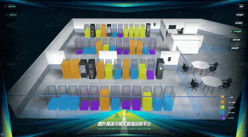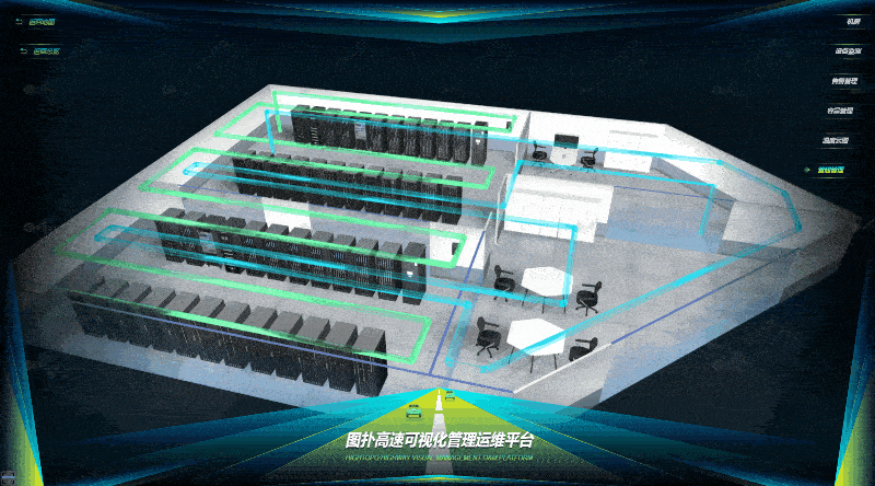 图扑软件(Hightopo)的数据中心 3D 可视化系统将多种复杂的管理系统信息聚集在虚拟仿真环境下,以人类最直观的理解形式展现,可大幅度提升信息交互和操控的效率,减少时间损耗和信息的浪费,保证信息的及时性和准确性。该系统不仅可应用在公路机房、还可以用园区、医院、军营等各领域数据中心机房:
