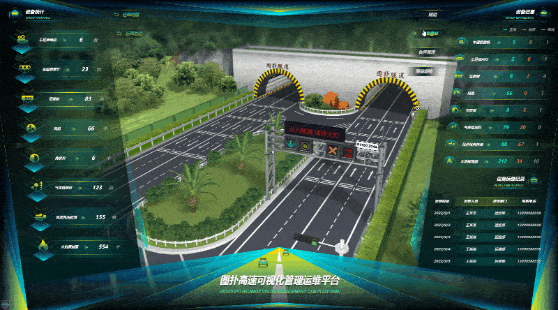 图扑软件借助 HT for Web 技术赋能,将设备告警信息、故障信息等数据进行整合,对隧道内的车道摄像头、指示灯、情报板、风机、亮度仪、气体检测仪、风速风向检测、火焰探测器等设备进行数字化监管。