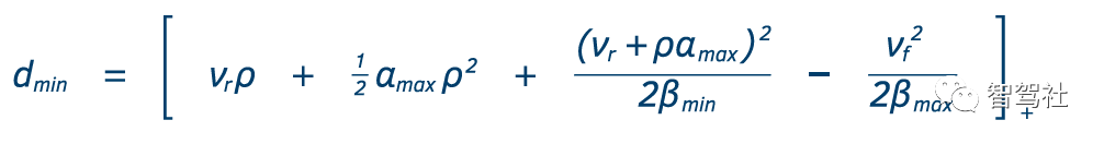 另外一种方法是可以对AV实施程序化控制。通过以下数学公式可以在安全跟车距离范围内实现车辆操作。