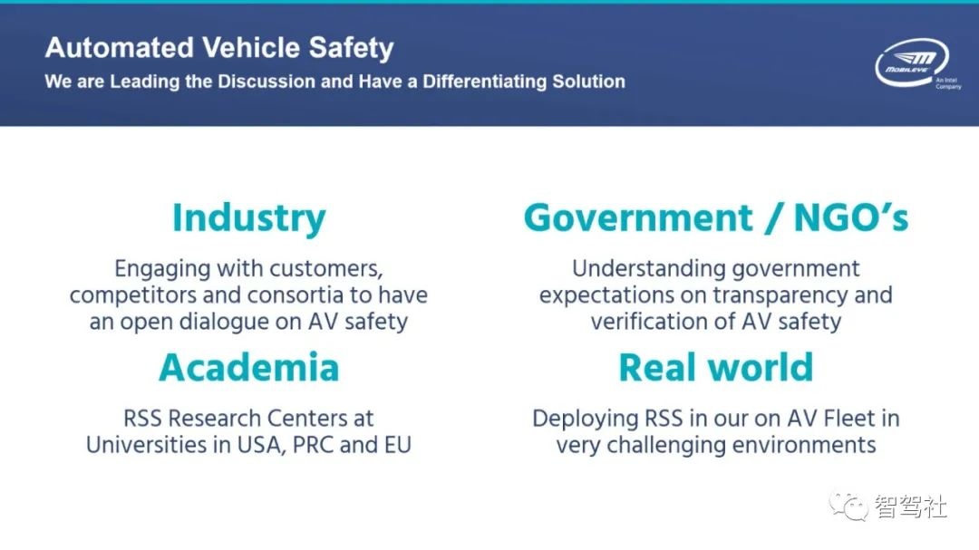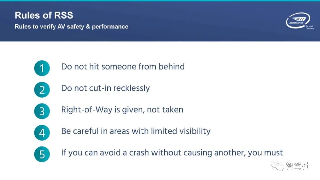基于人类启发的安全驾驶常识规范指导之下,Mobileye开发了一项技术中立的安全模型。该模型有助于行业与政府通过正式逻辑与规范来明确自动驾驶汽车安全驾驶的概念。这一规范建议采用责任敏感设计原则(RSS),并包含五个核心安全标准。