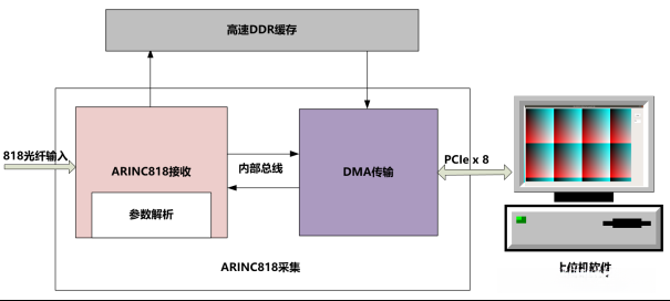 该ARINC818采集卡基于高集成度FPGA芯片实现ARINC818协议的运行,并通过高速8xPCIe接口实现实时高清图像的软件采集功能。