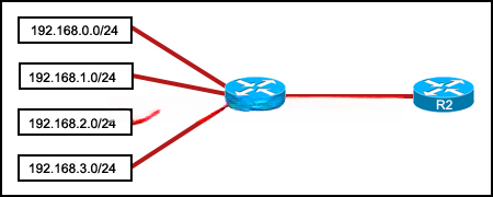 41.请参见图示。 R1 会使用哪一总结地址来向 R2 通告其网络?