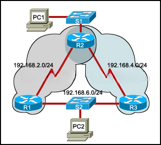 | Router2 和 Router3 之间的串行接口为开启状态。 | |