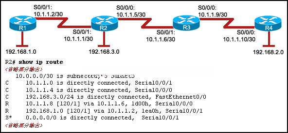 30.请参见图示。 所有路由器都运行相同的路由协议。 根据图示及其显示的命令,下列哪一项叙述正确?