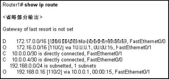 | Router1 正同时运行着 EIGRP 和 OSPF 路由过程。 | |