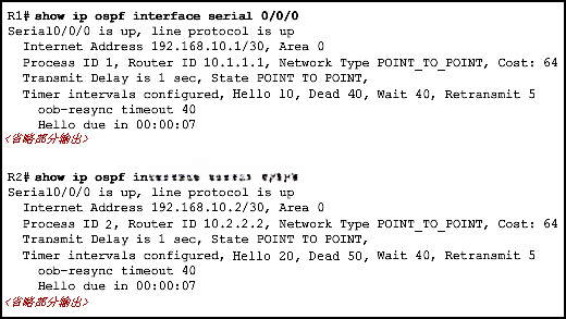 | 在路由器之间配置相同的 hello 发送间隔。 | |
