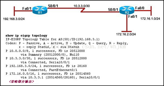 R1 上已运行了show ip eigrp topology 命令。