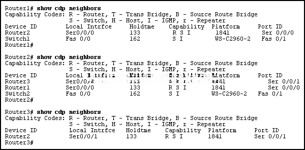 49.请参见图示。 在 R1 上运行了 show cdp neighbors 命令。 从输出中可以推断出新检测到的设备具有哪两项情况?(选择两项。) |